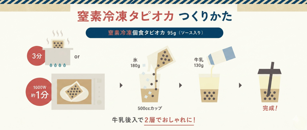 こうした課題を一気に解消するのが、今注目されている「冷凍タピオカ」です。