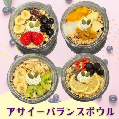 見た目や味はもちろんのこと『体のお悩み』に寄り添うアサイーボウルです。ルアナ・腸活・回復・美肌の4種類からお選びいただけます。
